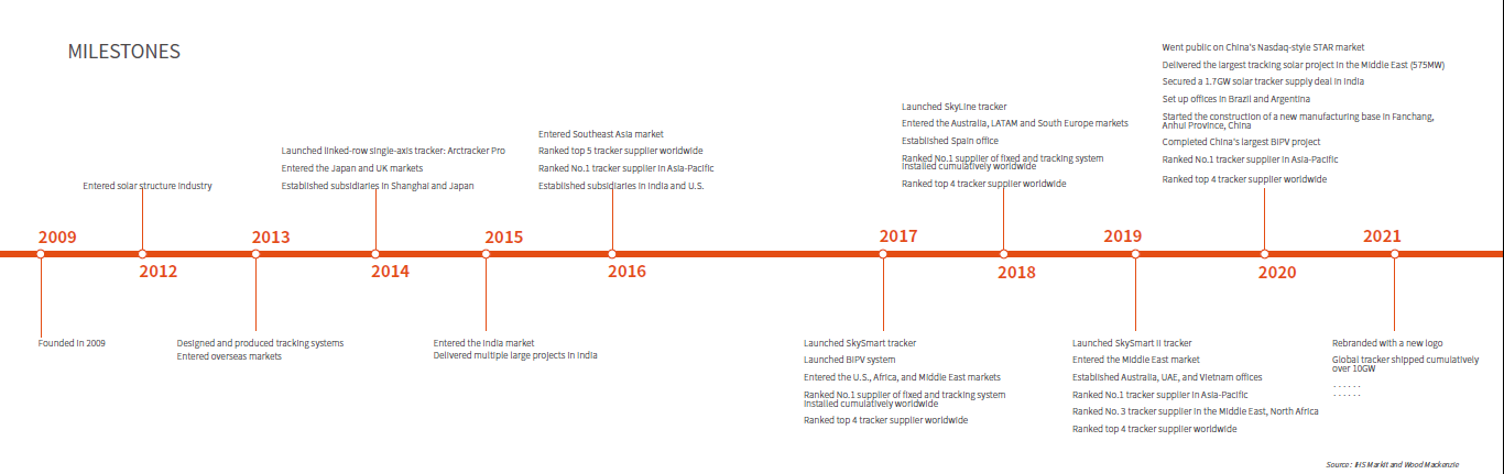 As of the end of 2020, Arctech has supplied over 32GW of tracking and racking systems to nearly 1,100 PV plants in 40 countries, thanks to its extensive marketing networks including its offices in China, Japan, India, the U.S., Spain, Australia, UAE, Mexico, Chile, Brazil, Vietnam and Argentina. It was listed among the top 4 tracker suppliers by IHS Markit and Wood Mackenzie from 2017 to 2020. The company went public on China’s Nasdaq-style STAR market in August 2020. With a diversified workforce of over 1,000 employees, Arctech has an unwavering commitment to offering industry-leading solar trackers and best-in-class services to boost energy yield for solar power plants and maximize returns for investors.